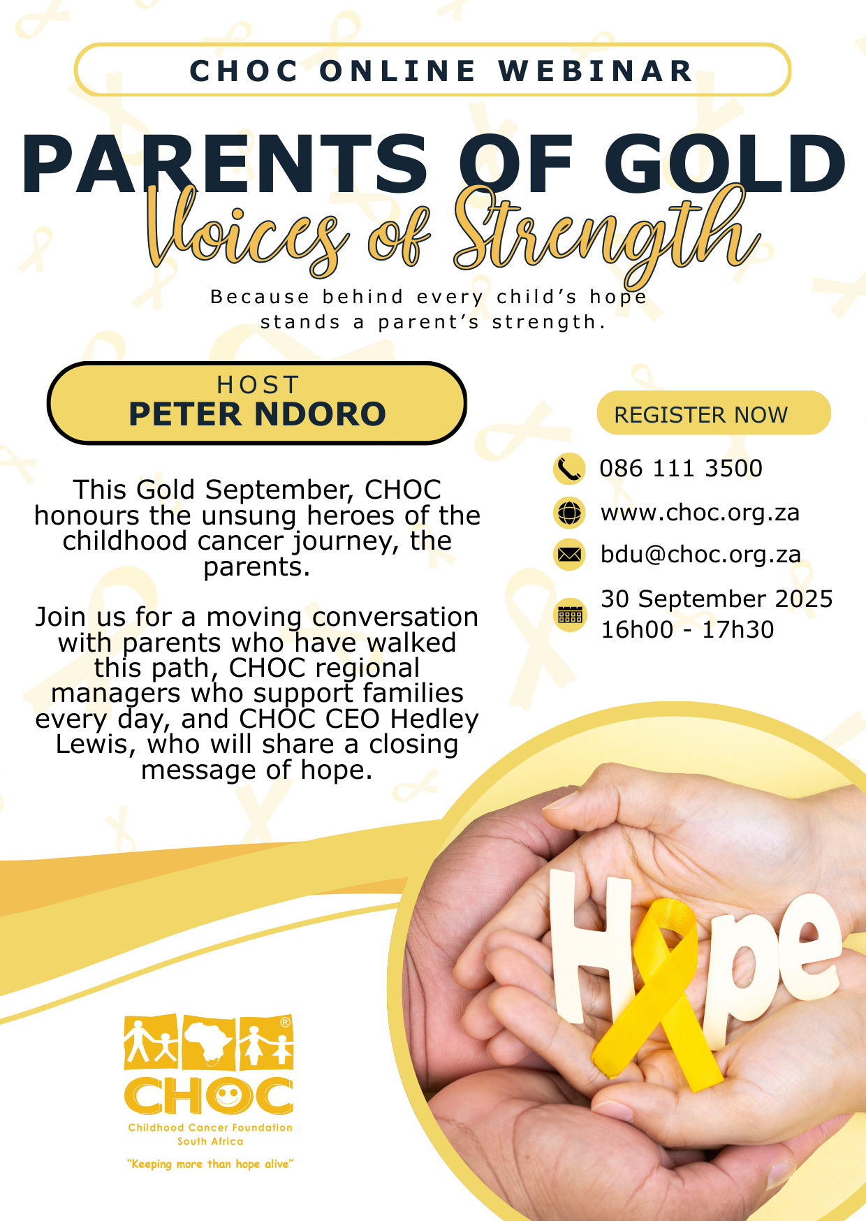 The event will be hosted by broadcaster Peter Ndoro and will feature heartfelt conversations with parents who have experienced childhood cancer first-hand. Attendees will also hear valuable perspectives from CHOC’s regional managers, followed by a closing message of hope from CHOC CEO Hedley Lewis.