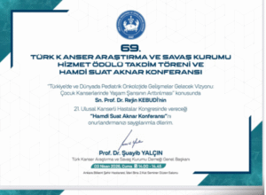 Prof. Kebudi will receive the award during the National Cancer Week events in Ankara on April 3, 2026, where she has also been invited to deliver the honorary lecture. Her presentation, titled “Advances in Pediatric Oncology in Türkiye and Globally: Vision for the Future: Increasing Survival Rates”, will highlight progress in the field and outline future priorities for improving outcomes for children and adolescents with cancer worldwide.